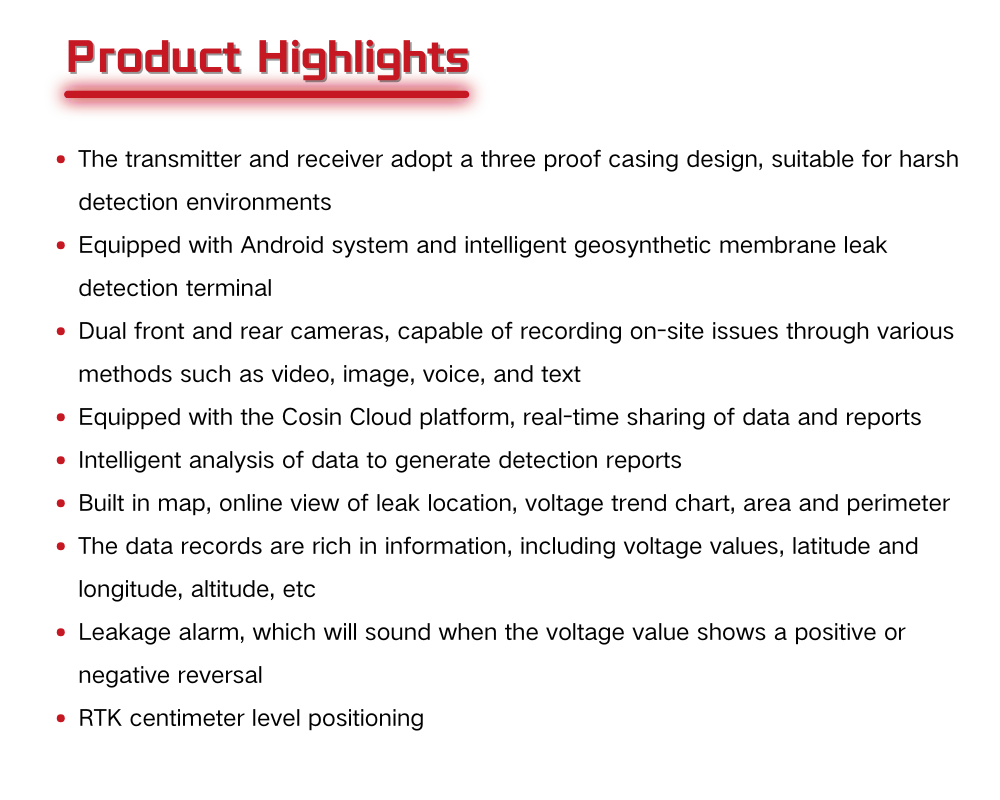 It can detect leakage points below 0.5m and not less than 6mm under the condition of good conductivity of the covering layer.
